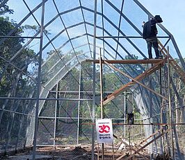 Cette volière de 140 m² en acier galvanisé garantit la sécurité des aras, les mettant à l’abri des prédateurs en pleine forêt péruvienne. /©Ikamaperu