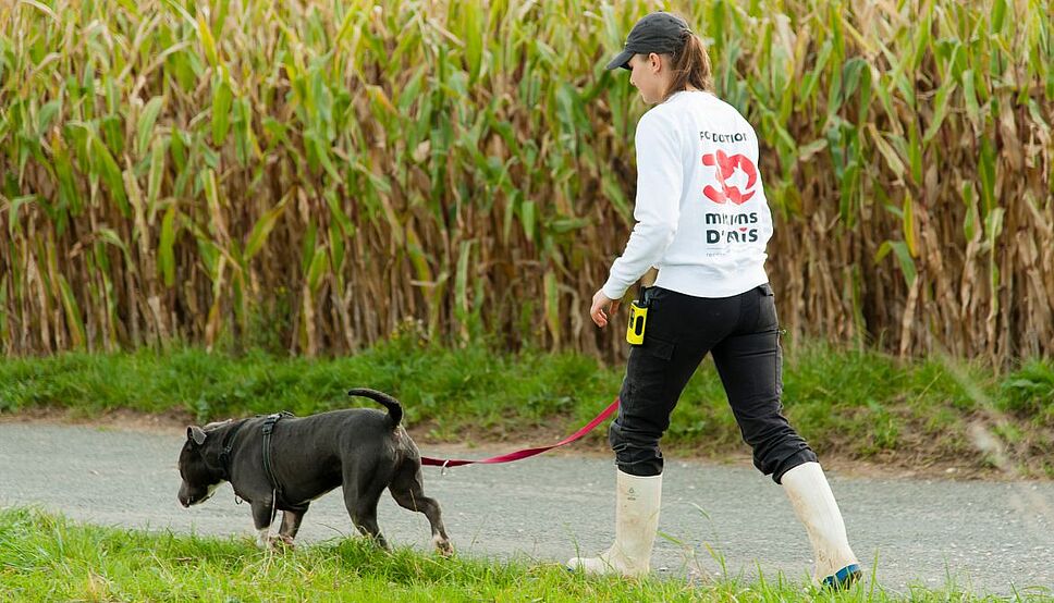 La « promenade test » avec le chien est l’une des principales étapes avant l’adoption, pour voir si le courant passe bien entre l’animal et l’adoptant. /©Christian Malette – Refuge 30 Millions d’Amis de la Tuilerie