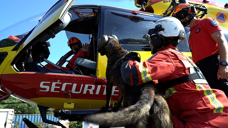 Le Grand Format de 30 Millions d'Amis dévoile également les entraînements spectaculaires des chiens, notamment une désensibilisation sous hélicoptère de la Sécurité civile. / ©Fondation 30 Millions d'Amis