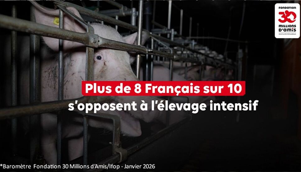 Selon le Baromètre 2026 « Les Français et le bien-être animal » de la Fondation 30 Millions d’Amis, réalisé par l’Ifop, 8 Français sur 10 rejettent l’élevage intensif et 90 % des citoyens soutiennent l’interdiction européenne de l’élevage en cage.